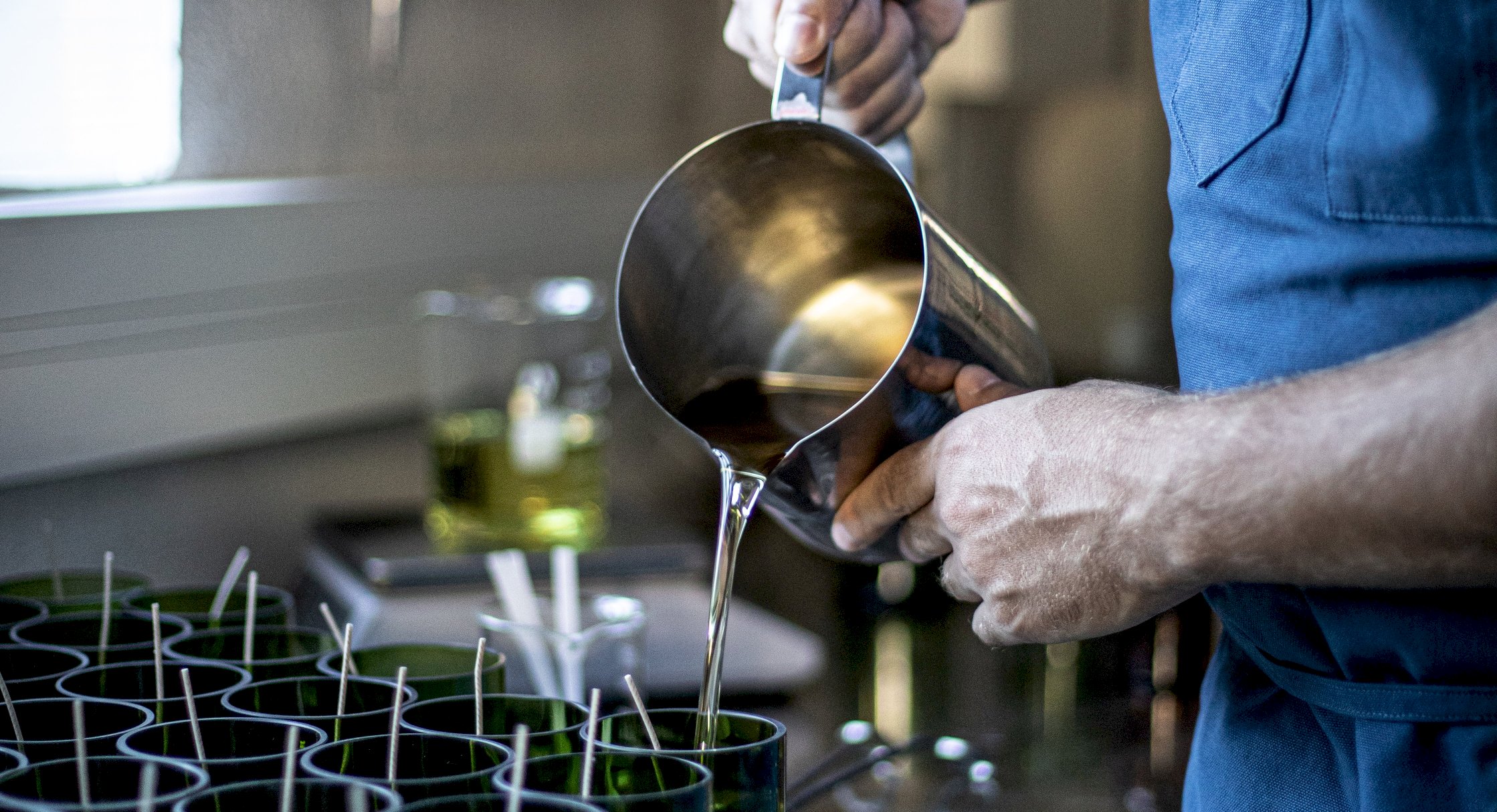 12 mois de recherche sont nécessaires pour trouver le parfumeur partenaire et développer les concentrés. En parallèle, il se forme aux métiers d'artisan cirier et verrier. D'innombrables essais techniques sont réalisés afin d'obtenir un résultat à la hauteur de son exigence.