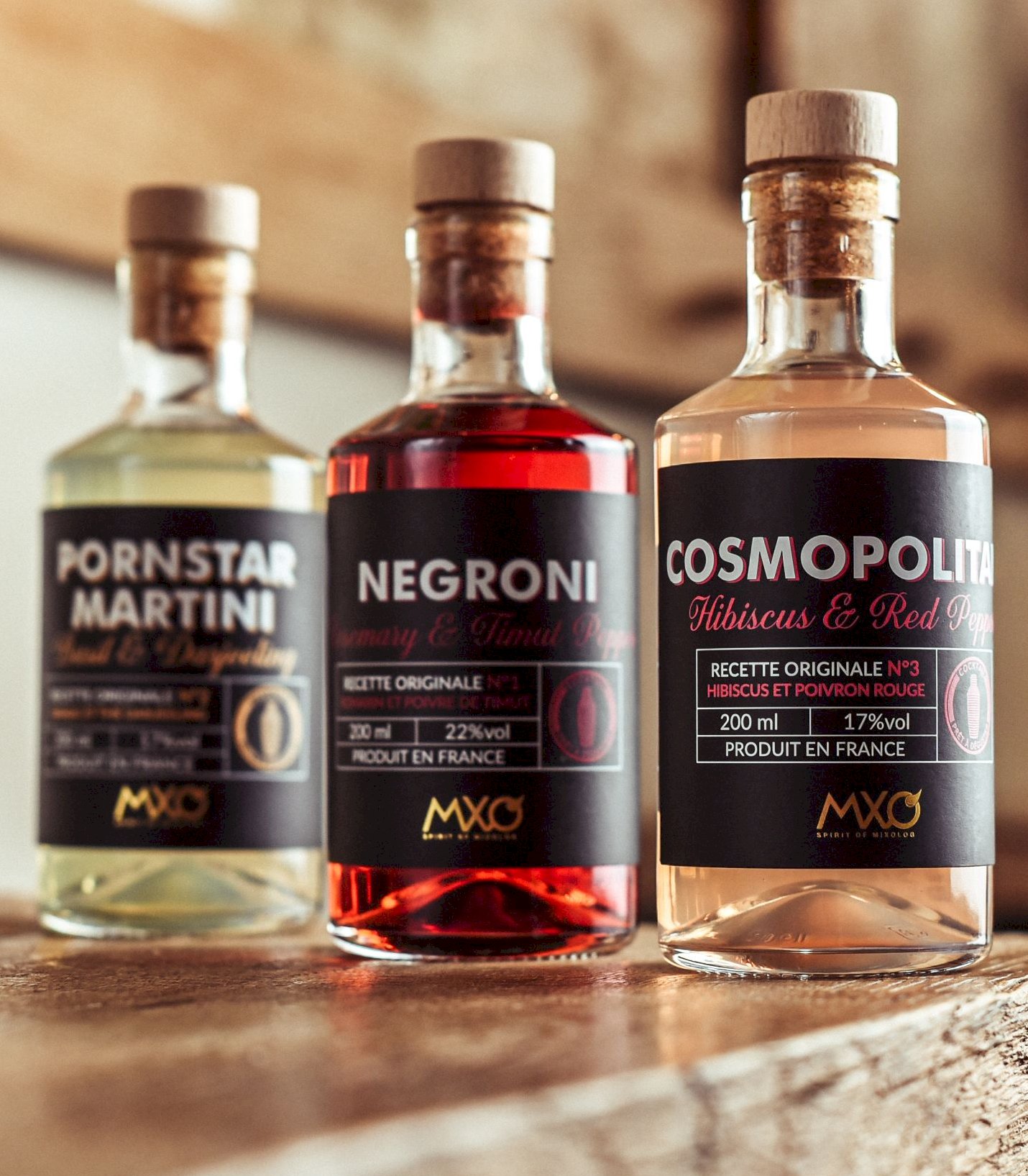 Les cocktails sont produits en Charente, dans la « French Spirits Valley » où se regroupent les grands experts de la production de spiritueux. C’est dans ce terroir que MXO se développe avec une démarche de circuit court : bouteilles, bouchons et étiquettes sont approvisionnés dans un rayon de 45km du lieu d’embouteillage. Quant aux spiritueux haut de gamme, ils sont produits artisanalement sur place au sein de sa distillerie partenaire.