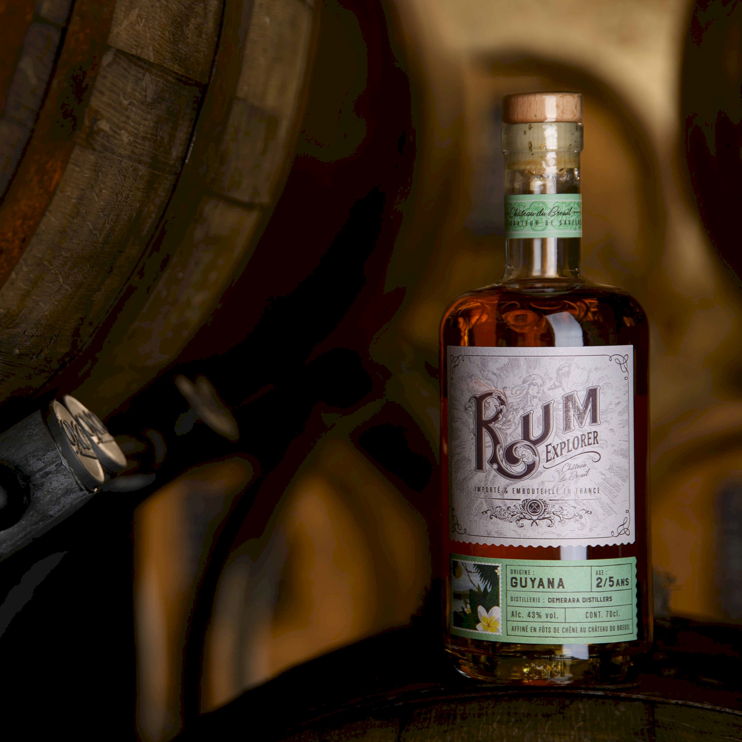 Niché au coeur du village du Breuil en Auge, au milieu de la Vallée d’Auge, le Château du Breuil fait preuve depuis 1954 d’un savoir-faire d’exception dans l’art de la distillation, de l’affinage et du vieillissement de grands Calvados. Riche de son histoire et de son expertise, et animé par le défi d’étendre son portefeuille de produits premium, le Château du Breuil s’est lancé en 2019 le défi de concevoir sa première gamme de rhums affinés en Normandie. C’est chose faite en 2020 avec la naissance de Rum Explorer, explorateur de saveurs, avec une gamme origine affinée au Château et une gamme blend.