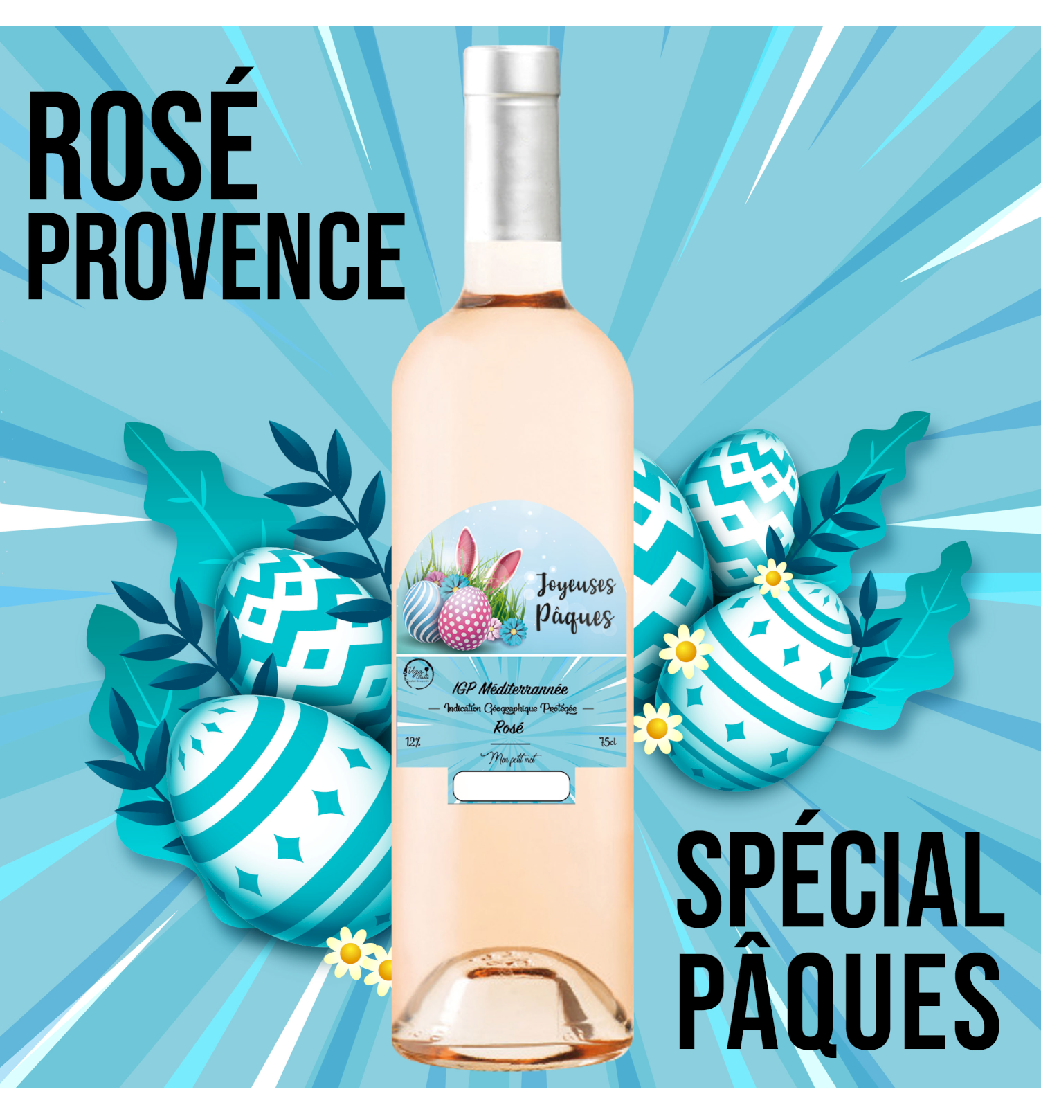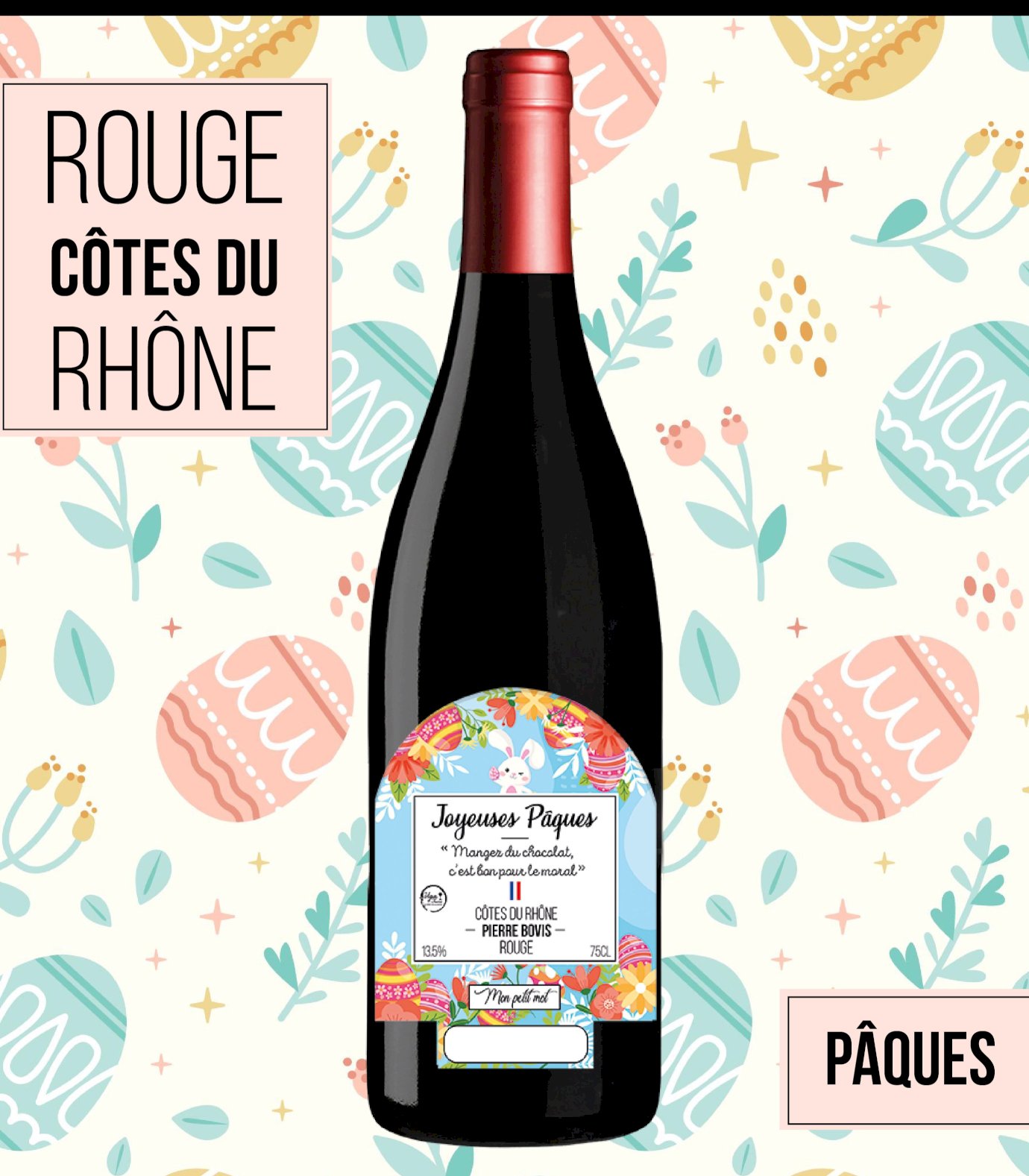 Une bouteille originale à offrir pour pâques ! Un vin unique renfermant un produit de qualité. Ce réseau de Provence est fruité et léger. À servir frais pendant des repas entre amis, des grillades et des grandes salades.