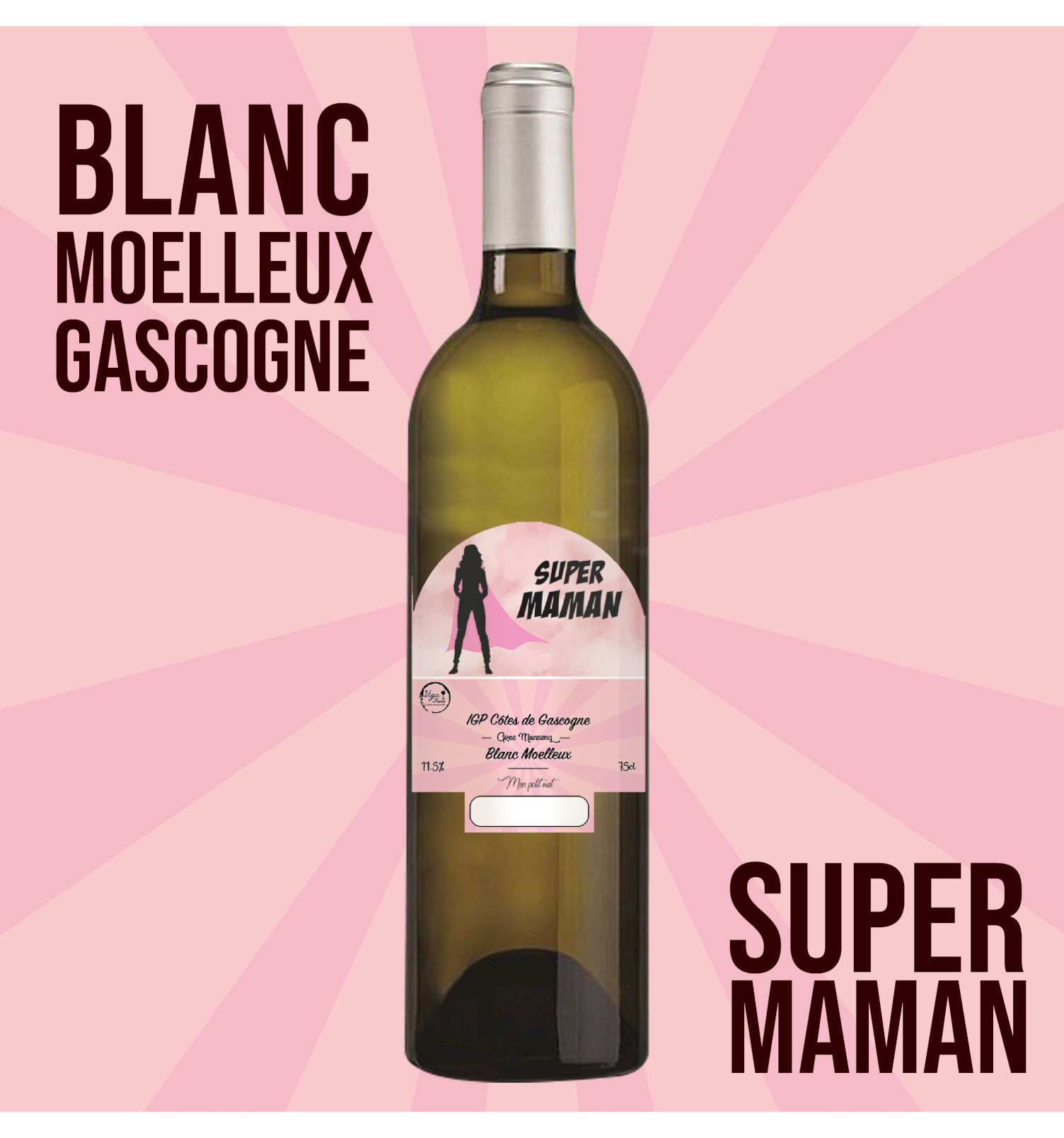Une bouteille originale pour votre maman ! Un vin unique renfermant un produit de qualité. Ce Côtes de Gascogne 100% gros Manseng saura séduire votre palais avec ses notes d'agrumes, de fruits secs et de fruits confits. Idéale à l'apéritif ou ... Lire la suite