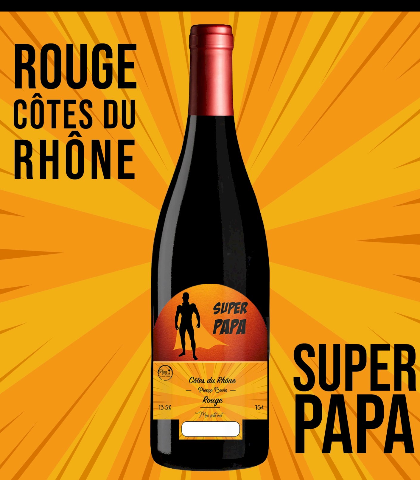Une bouteille originale pour offrir à votre Papa ! Un vin unique renfermant un produit de qualité. Ce réseau de Provence est fruité et léger. À servir frais pendant des repas entre amis, des grillades et des grandes salades.